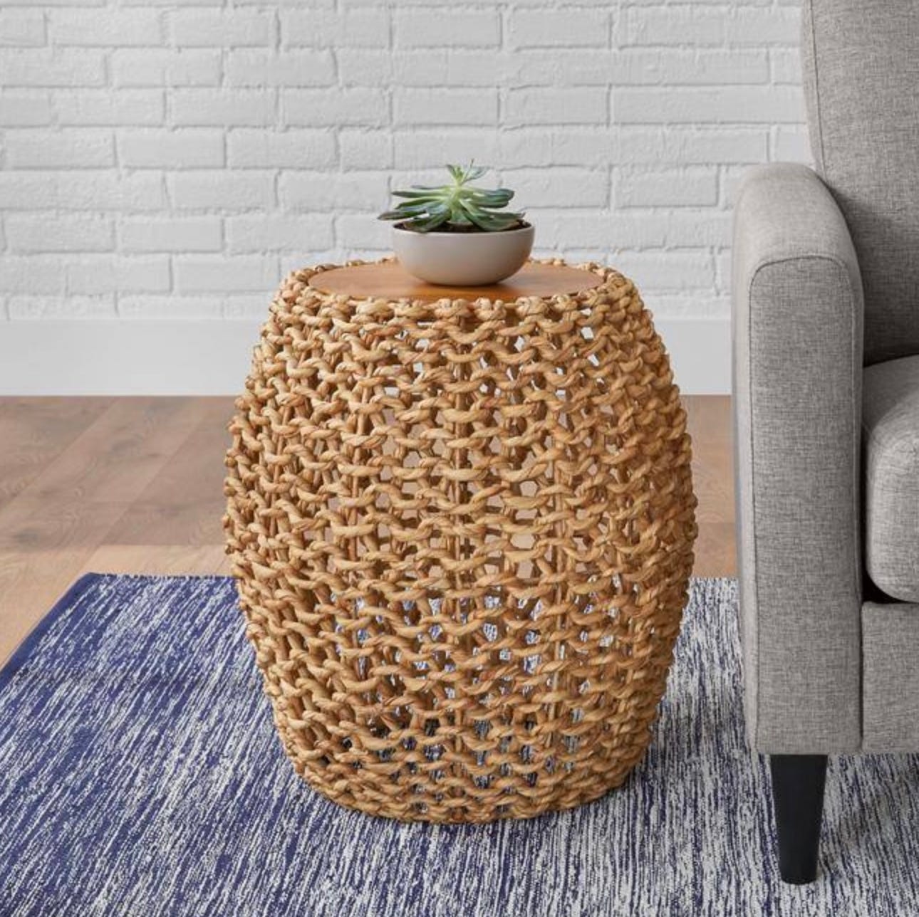 This accent table is as functional as it is beautiful. You can use this woven drum-shaped as a side table next to a chair, sofa or bed.